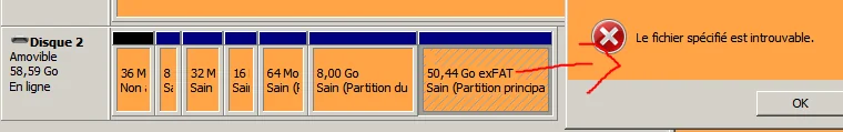 No drive letter was associated to the card, so i used a partition tool and the parts manager of windows but none of them can assign a drive letter to the roms partition
