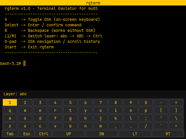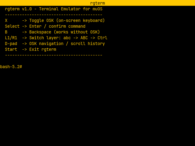 - GitHub: GitHub - apostolicus/rgterm: Minimalist terminal emulator for muOS on Anbernic handheld devices ยท GitHub