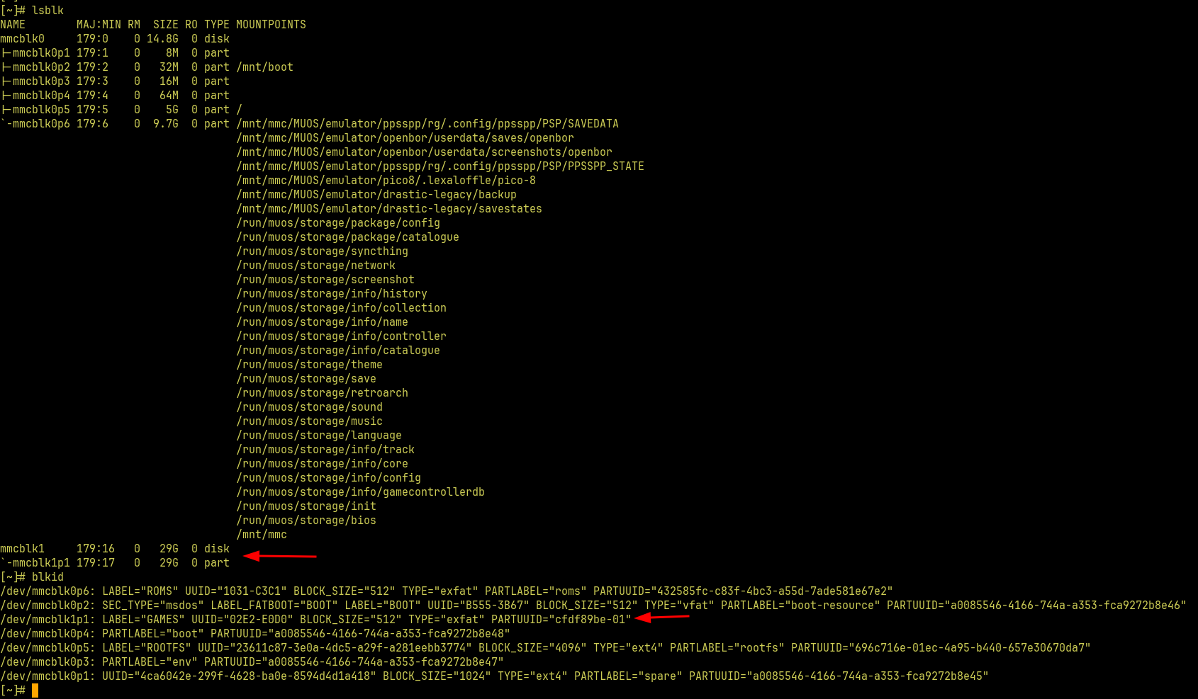 I am using a SanDisk Ultra 32GB memory card, which I have formatted according to SanDisk’s instructions. On it I have a ROMS folder with less than 1G of files.